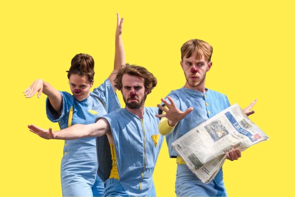 C’est dans cette joyeuse dynamique que s’articule le travail des 3 acteurices / metteur.euse.s en scène: Clara Cesalli, Jean Leroy et Lila Leloup. Leurs questionnements politiques infusent leurs créations théâtrales et la manière sensible de les mener, de la création à la diffusion. Toujours curieux.ses d’inventer des formes d’art vivant à la portée d’un grand nombre et en dehors des espaces dédiés au théâtre, iels se retrouvent (jusqu’à présent) entre art clownesque, proposition visuelles et médias.